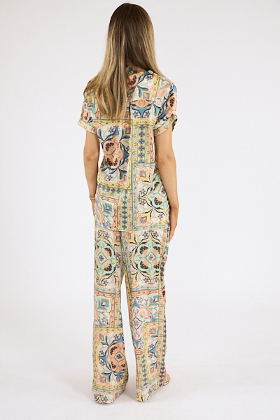The Ava pants are cut from a slinky satin fabrication, offering a fluid and easy drape with an easy pull on elastic waist.