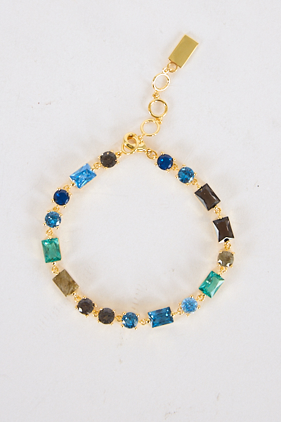 The Jagger 14K gold vermeil bracelet features a combination of multi cz, and natural rainbow moonstone.