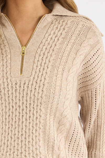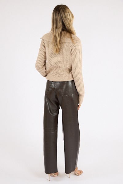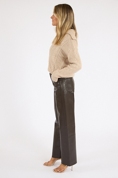 The Camello Pullover is made from a luxurious wool-blend with a placement cable design and signature oversized collar.