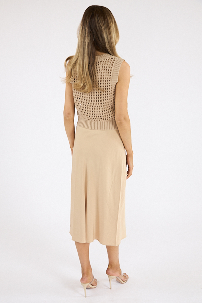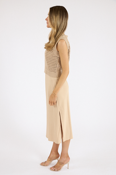 The Pal Sweater Dress combines a cozy sweater with a satin slip dress silhouette.