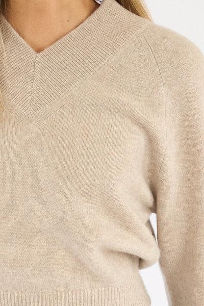 Premium Cashmere Raglan V Neck Oat