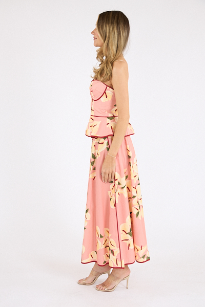 The Anthurium Print Skirt is designed with a loose fit, high waist and contrast piped details.