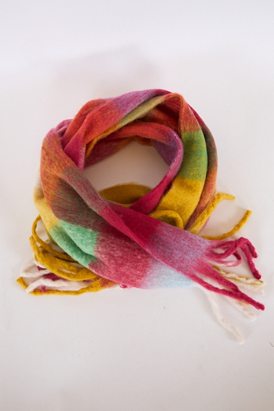 Beka is a warm and lightweight scarf blanket, made with multi colored plaids.