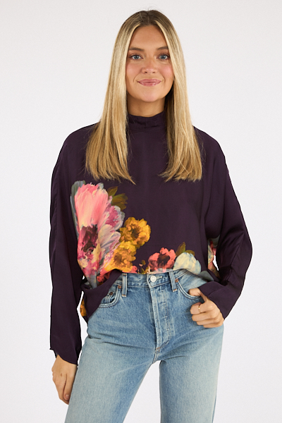 The Covey Top is designed with a mock neck, long sleeves, and a relaxed fit.