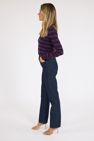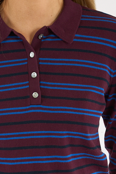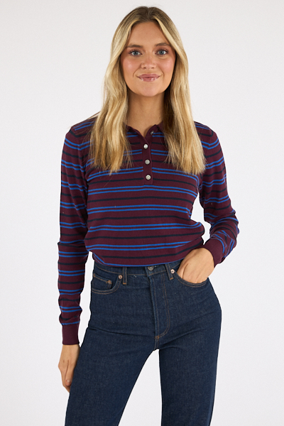 Greta is a classic long sleeve polo designed with a knit striped pattern for a preppy vibe.