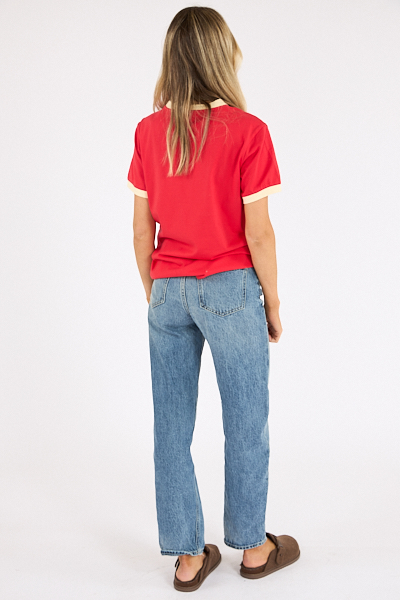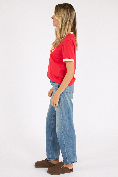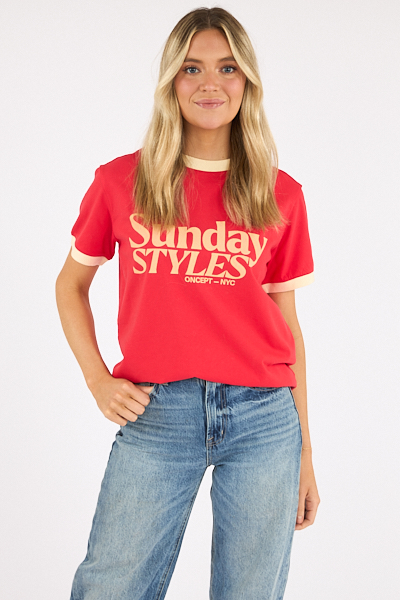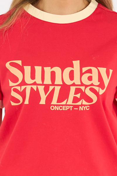 Lizzie is a 70’s inspired tee with a contrast collar and hem and a Sundays Styles design.