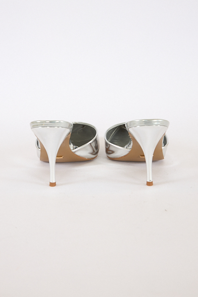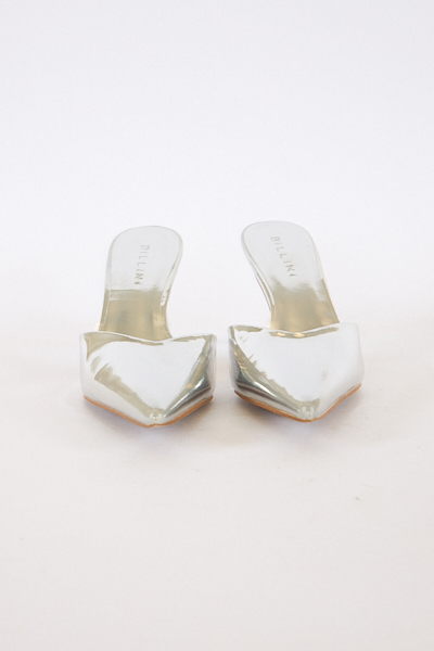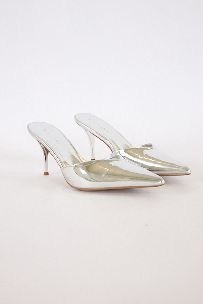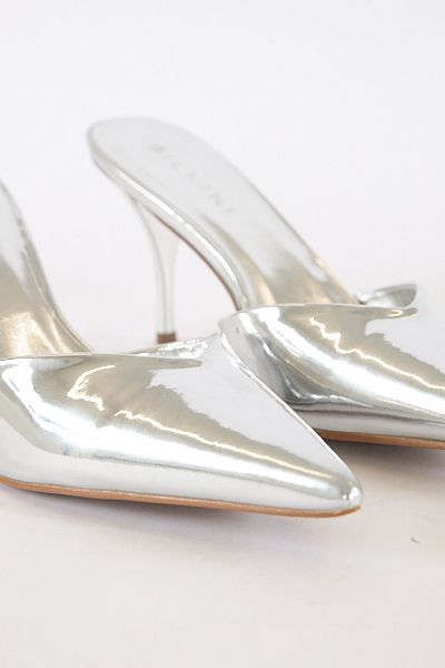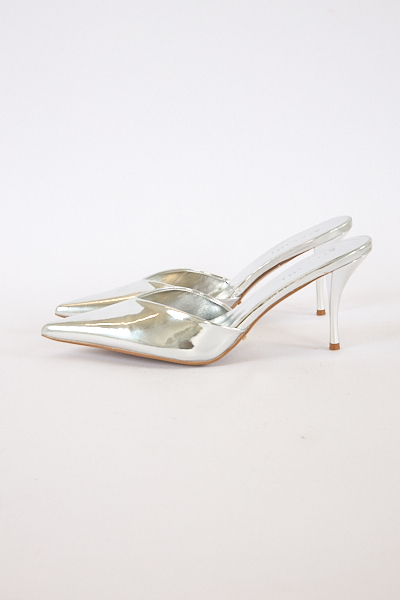 The Manson is a mid stiletto heel with a closed pointed toe and chrome silhouette.