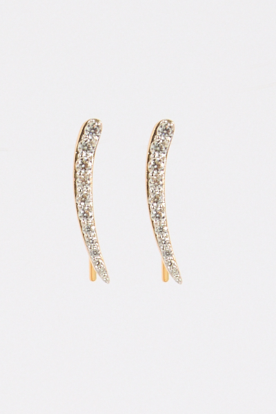 Sleek climbing earrings featuring pavé zirconia in pointed curve.