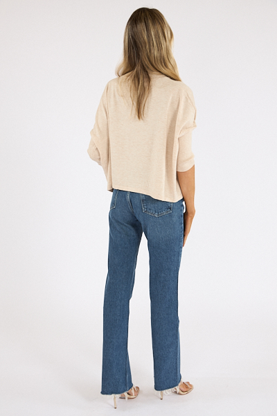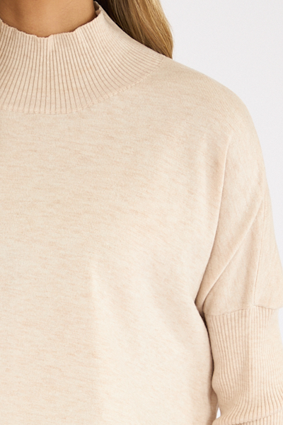 The Aja Sweater combines the cozy knitwear feel with a little bit of structure with its smooth angora blend fabric and contrasting ribbed turtleneck and sleeves.