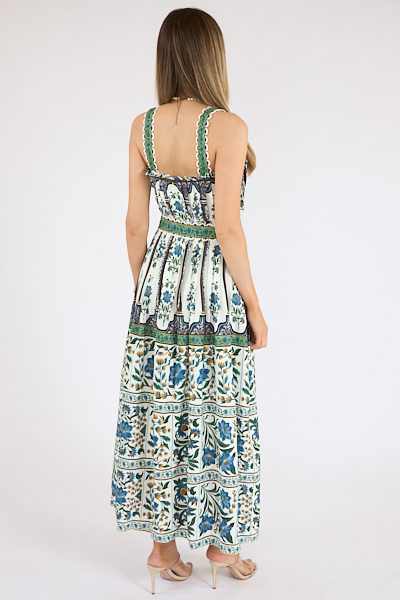 A soft off-white hue complements the square neckline for an effortlessly elegant look. The belted waist creates a flattering shape, while the flowing maxi length moves with ease. Designed with an invisible zipper at the center back, this timeless style blends comfort and polish for sun-filled days.