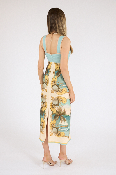 Crafted from responsibly sourced Euroflax™ linen, this dress offers breathable, airy comfort. A playful multicolor pattern brings movement to the flowing silhouette, while a flattering sweetheart neckline adds a romantic touch. Designed for effortless wear.