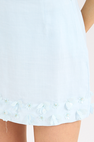 The Margarita Skort in Blue Aura blends the look of a skirt with the comfort of shorts. Featuring a soft light blue hue and delicate floral trim, it offers a flattering fit and easy movement—perfect for warm-weather wear. Pair it with the Margarita Cami for a coordinated set.